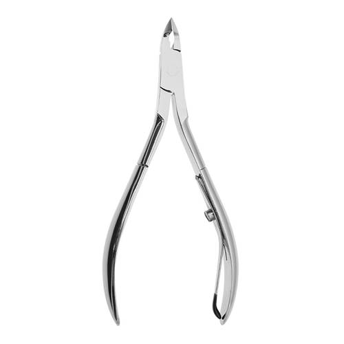 Alzando la molletta che si trova all’interno del manico si innesca il meccanismo che permette di tagliare le pellicine delle mani con facilità e precisione.